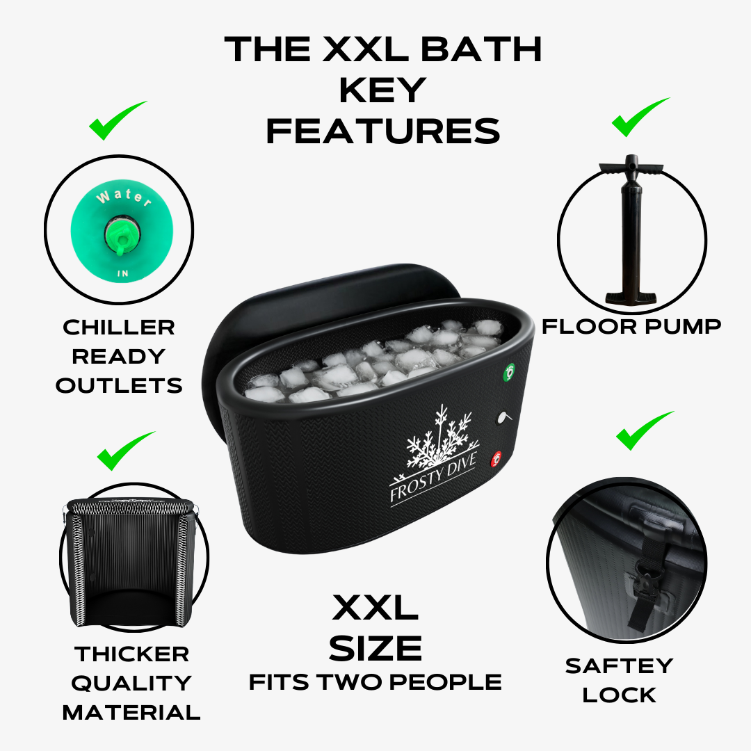 Pair the 1/2HP Frosty Dive Chiller with our XXL Tub for rapid cooling down to 3°C. The XXL Tub’s generous size (185cm x 85cm x 60cm) and 8cm-thick insulation keep water colder for longer, allowing two users to enjoy a full-body cold therapy session. Whether solo or with a partner, this combination provides the perfect, ice-free plunge experience with minimal energy use.