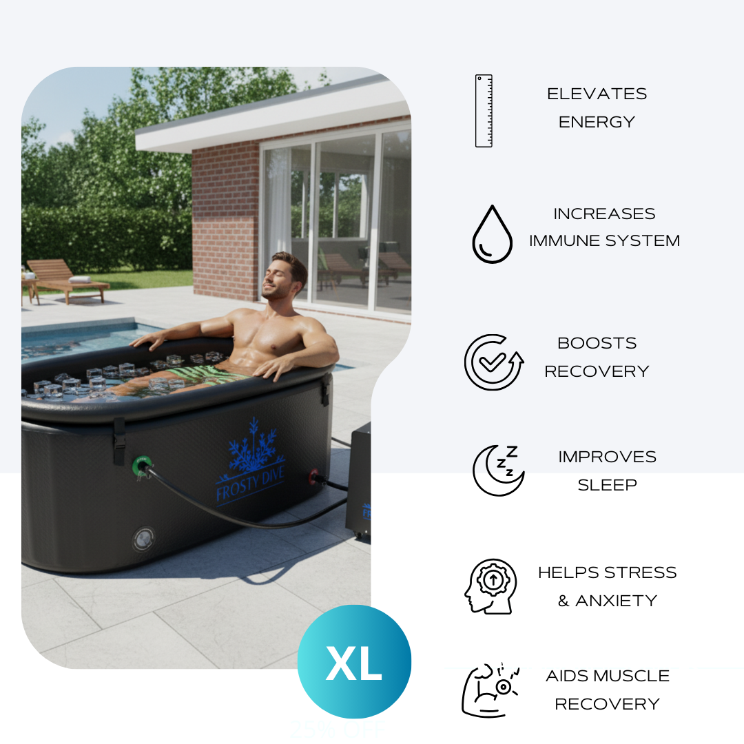 The Frosty Dive Portable Ice Bath Plunge offers several benefits for recovery and well-being. Immersion in cold water can help reduce muscle inflammation, alleviate soreness, and promote faster recovery after intense physical activities. It can also boost circulation, increase alertness, and provide a refreshing sensation that invigorates the body and mind.