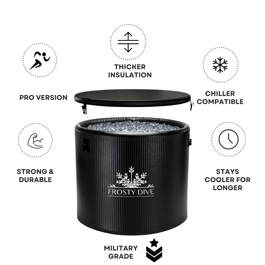 The Frosty Dive Portable Ice Bath Plunge offers several benefits for recovery and well-being. Immersion in cold water can help reduce muscle inflammation, alleviate soreness, and promote faster recovery after intense physical activities. It can also boost circulation, increase alertness, and provide a refreshing sensation that invigorates the body and mind.