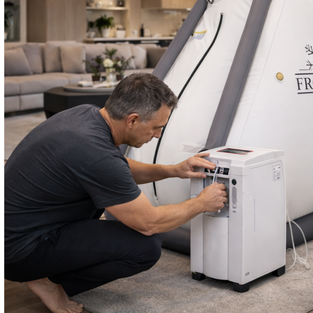 This full-length chamber operates at up to 1.5 ATA pressure, creating a calm, comfortable environment that supports relaxation, focus, and overall wellbeing — all from the privacy of home.