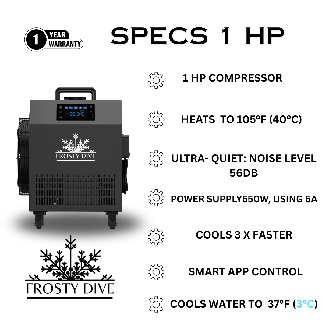 Kliv in i en värld av oöverträffad kylprestanda och välbefinnande med Frosty Dive's Water Chiller. Upptäck en ny värld av uppfriskningar och återhämtning när du tar kontroll över vattnets temperatur som aldrig förr