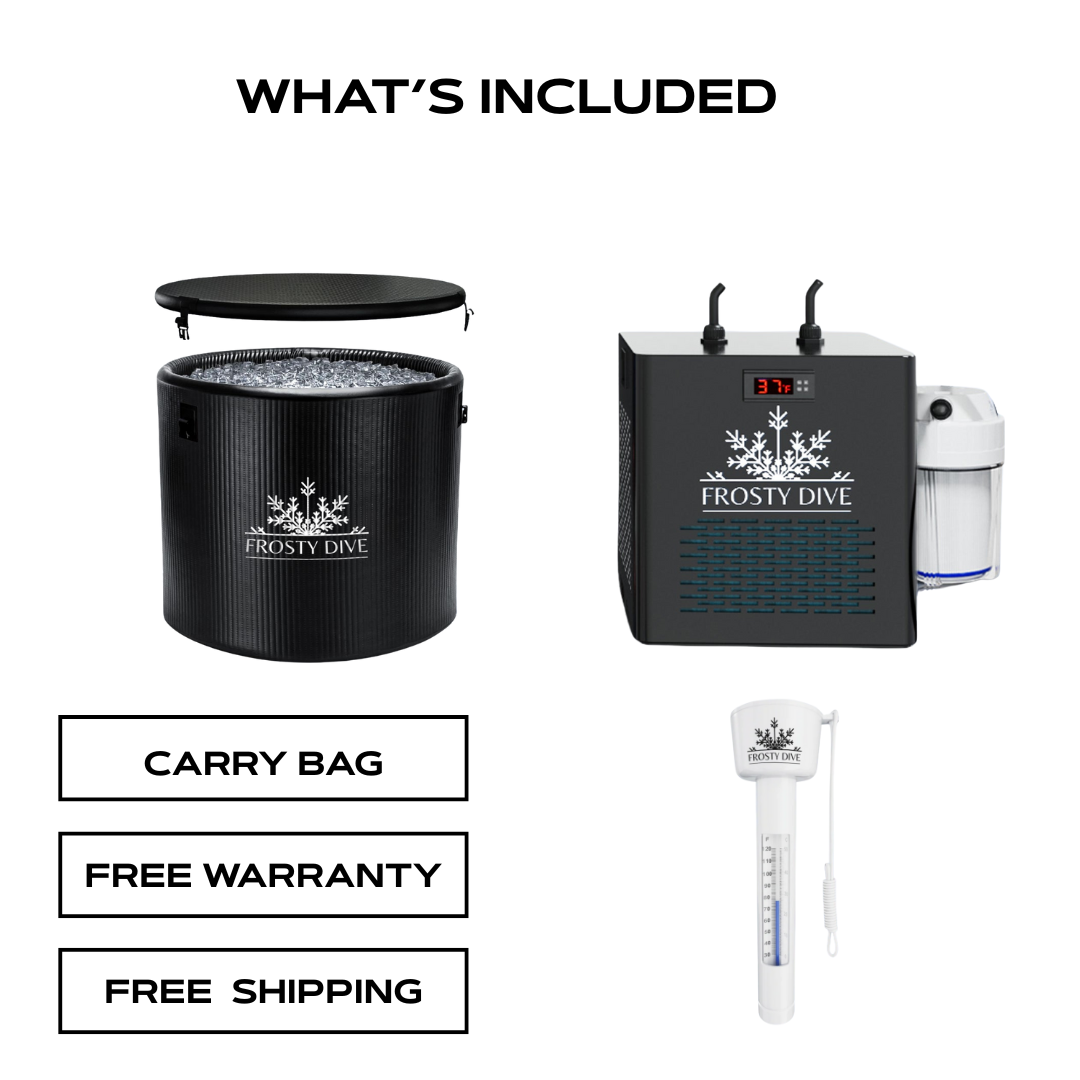 The Frosty Dive Portable Ice Bath Plunge works by filling the plunge tub with cold water, which is then cooled to your desired temperature using ice or a water chiller. You can then immerse yourself in the icy water for a rejuvenating and invigorating experience.