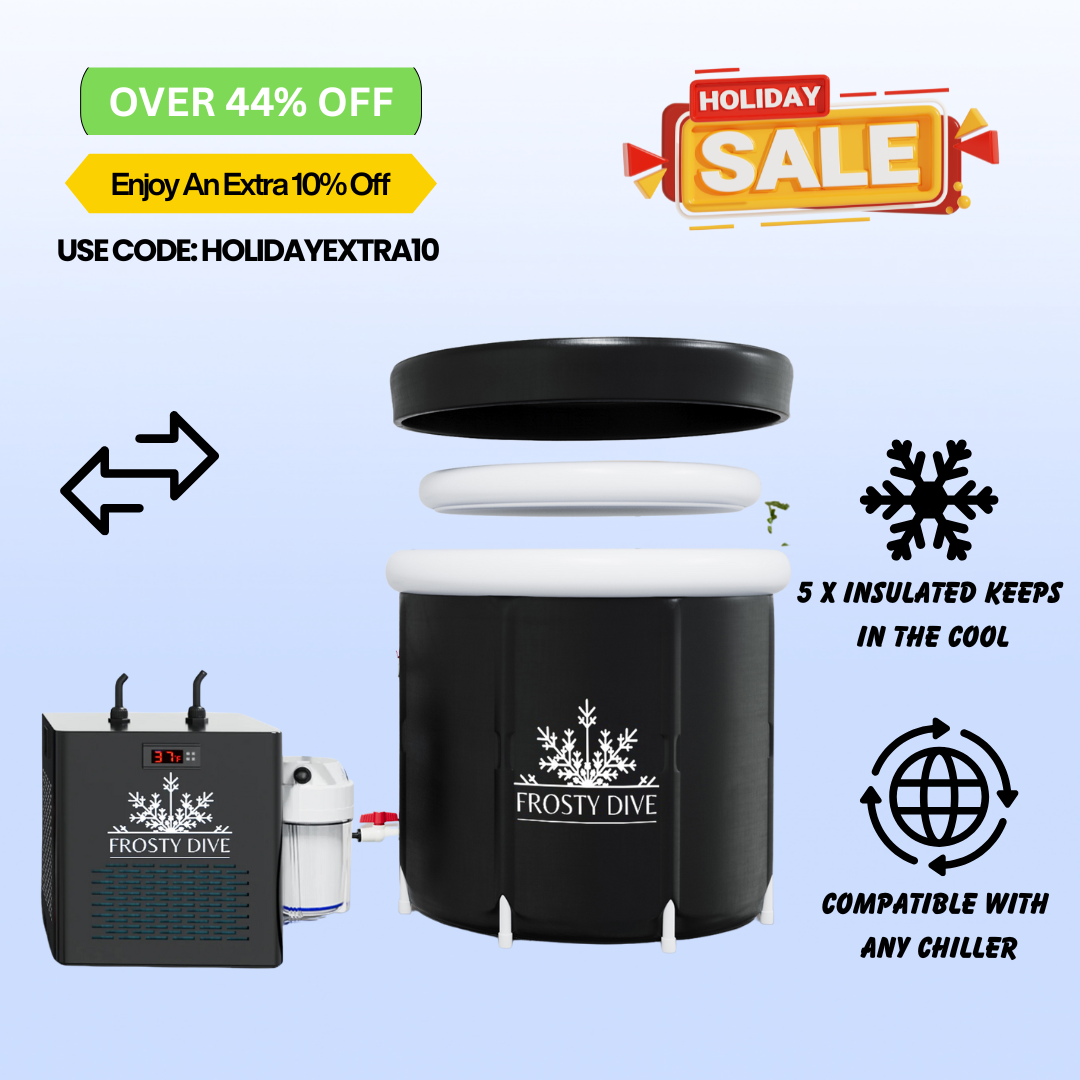 The Frosty Dive Portable Ice Bath Plunge works by filling the plunge tub with cold water, which is then cooled to your desired temperature using ice or a water chiller. You can then immerse yourself in the icy water for a rejuvenating and invigorating experience.