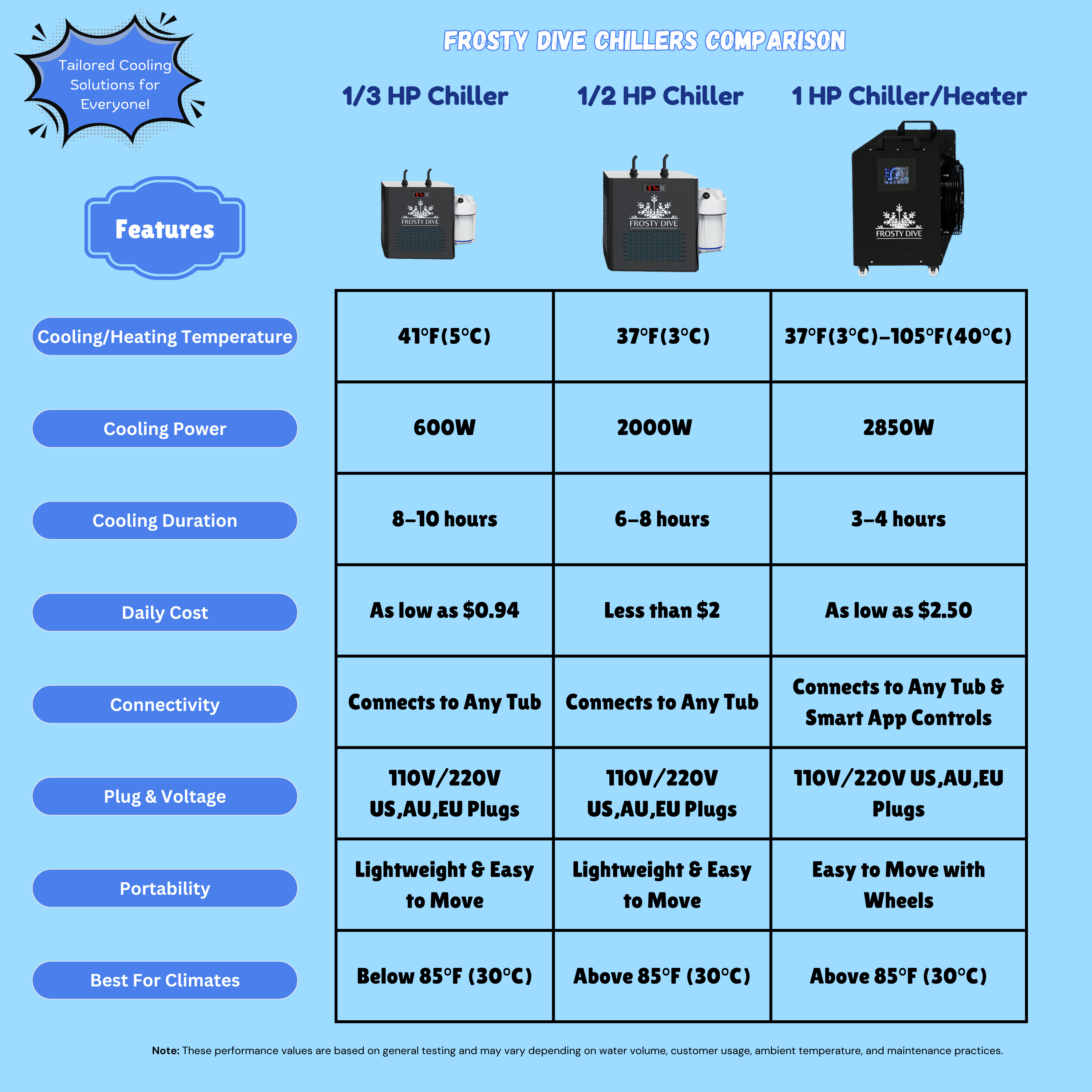 Don’t settle for less when you can choose Frosty Dive, a brand synonymous with enduring quality and unmatched performance. While some brands may entice with lower initial costs, their products often feature inferior plastic components and substandard compressors that compromise longevity and efficiency. Frosty Dive stands out by using premium metal tanks and copper wiring, ensuring our chillers not only last longer but also operate more efficiently. Registered and recognized across multiple countries, we prioritize customer satisfaction with robust protection policies. By choosing Frosty Dive, you’re not just purchasing a chiller; you’re investing in a reliable partner that offers peace of mind with every transaction. Opt for quality that lasts, supports your wellness journey, and provides continuous cooling without the downtime.